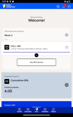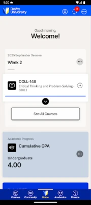We know you’re on-the-go – and now your education is, too. Through our mobile app, students of both DeVry University and Keller Graduate School of Management can access their courses, grades, financial information, academic support and more. This complimentary app helps you participate in your coursework and stay connected to your classmates, when and where you want.