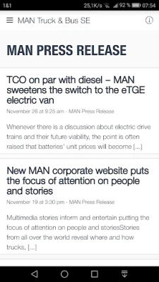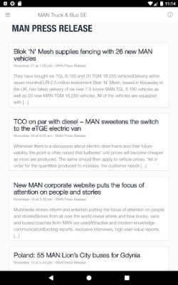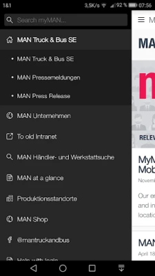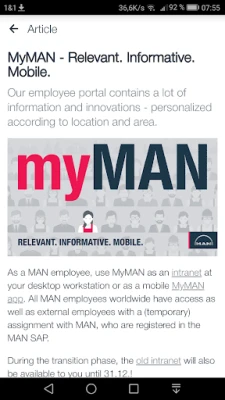 The employee app myMAN bundles current news and information from MAN Truck & Bus SE. Company news can thus be received quickly and conveniently on a business or private smartphone or tablet.