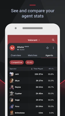 - Track and view recent Valorant matches