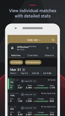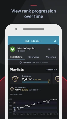 OVERVIEW/SKILL RATING: View player summaries based on recent matches. Filter tracker data by seasons, playlists, stats, characters, and more.
